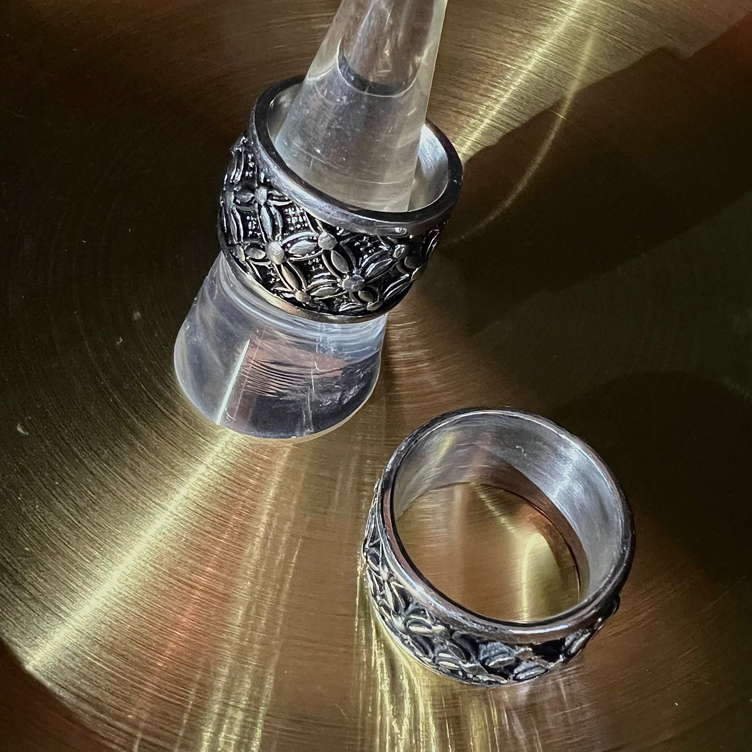 これはシルバー磨きの布で磨くと元のツヤに戻りますので、お好きな質感をお楽しみください。